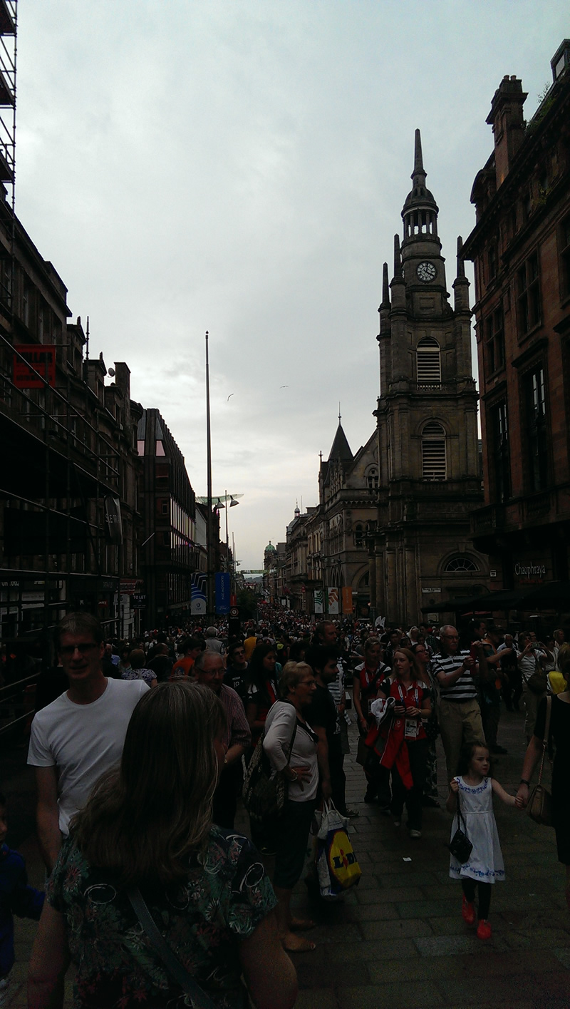 It was brilliant! Even for non rugby fans like my mum who attended, as soon as we arrived we felt the warmth of Glasgow (or rather the Glaswegian people), and got into it. Bless her, she’s still chanting for Uganda (the fans favourite underdogs) more than 24 hours after the events.